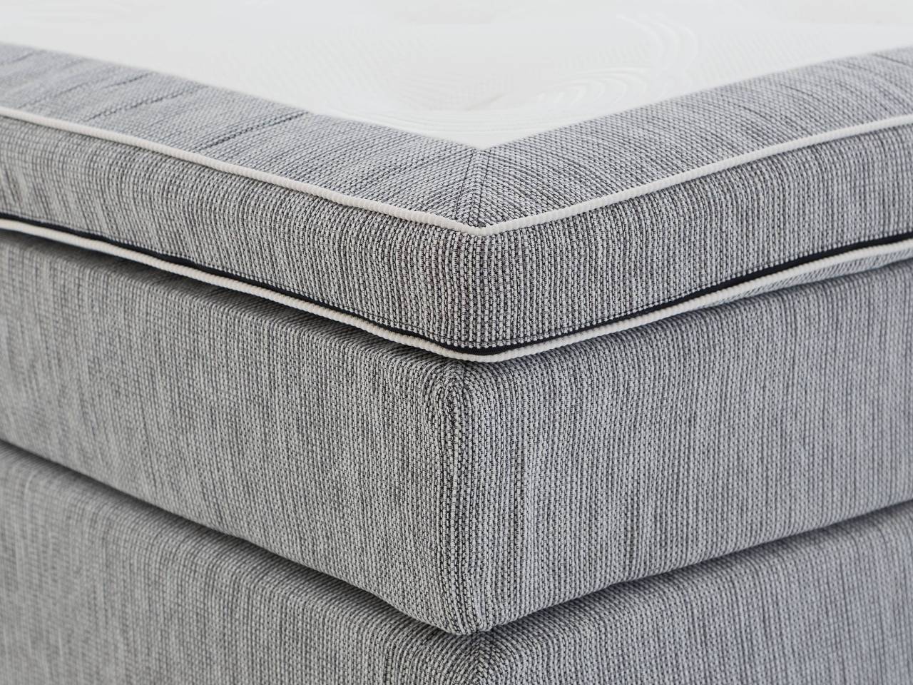 Vi tillbringar ungefär en tredjedel av våra liv i sängen. Att välja rätt säng är ett viktigt val vi bör lägga stor omsorg på. GRAND XL uppfyller definitivt kraven på både kvalitet och utseende. Det gråmelerade tyget är både väldigt slitstarkt och lättmatchat så att det ska passa in i just ditt sovrum. Lägg till en sänggavel och nackkuddar och du får en säng som är ett "statement piece" i ditt hem.